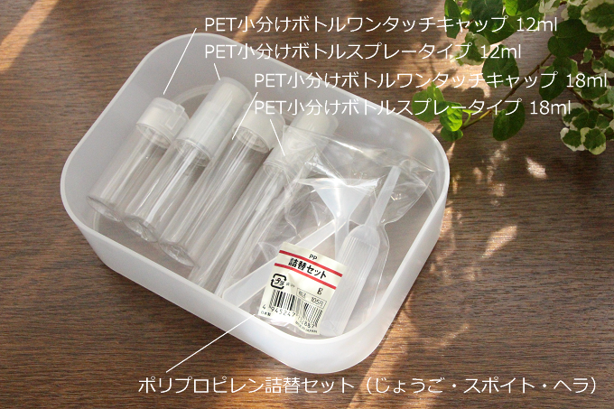 それらを出張や旅行の旅に、小分けボトルへ入れるのですが、日程ごとに使い分けています。