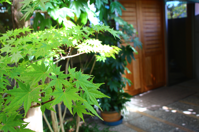 玄関先の紅葉の葉っぱは未だ緑。11月頃になると赤く染まるのでしょうね。
