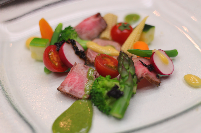 冷菜:和牛ローストビーフのサラダ仕立て 彩りソース