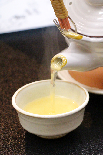 その後、牛筋でとったスープを加えて煮立たせ、特製の赤ワインだし汁は完成です。
