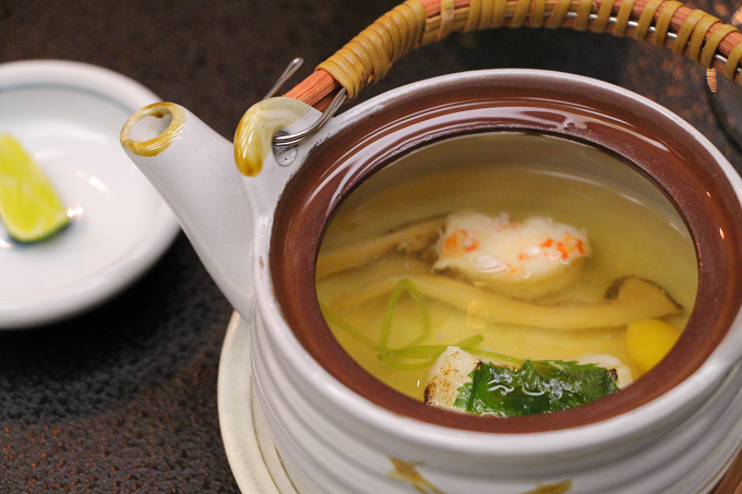 椀物:松茸の土瓶蒸し 海老 甘鯛 酢橘