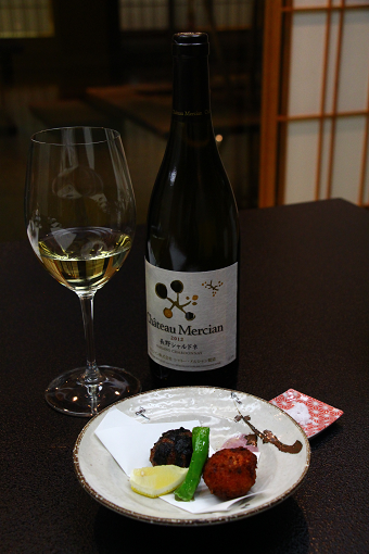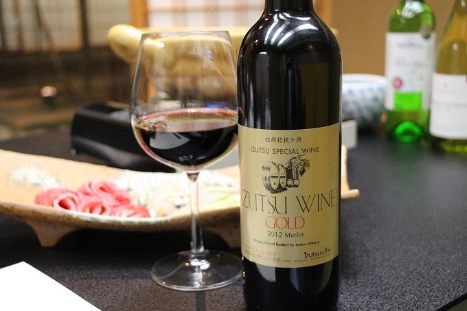 だし汁として使用した赤ワインと同じ「井筒ワイン ゴールド メルロー」です。