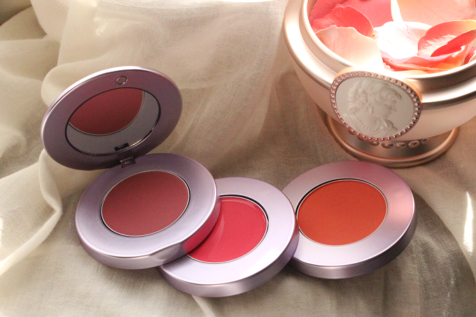 上から、グロッシー ルージュ、クリーム チーク ベース、プレスト チークカラーのスライド式3段重ねです。