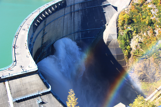 【星野リゾート 界 アルプス】番外編:黒部ダムで期間限定の三段紅葉と虹の競演を愛でる