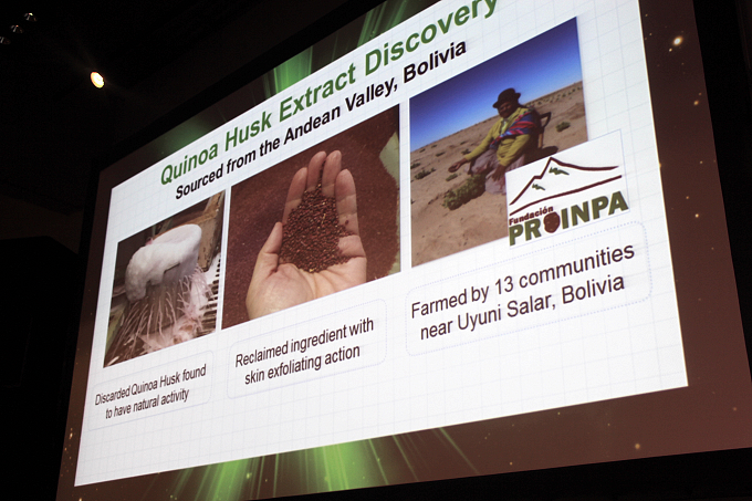 この日発表されたのは、南米ボリビアのキヌアを用いた画期的エイジングケア製品。