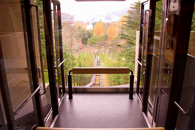 スロープカーでの移動はほんの数分の出来事ですが、スペシャル感たっぷり!
