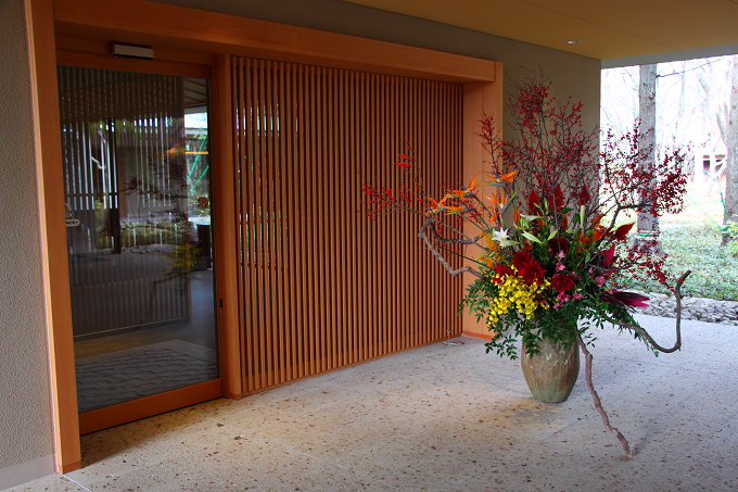 豪華に活けられた花々を横目に建物の中へ。
