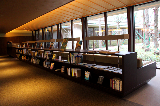 「界」ではお馴染みの「トラベルライブラリー」は、中庭を望むロビーに位置。