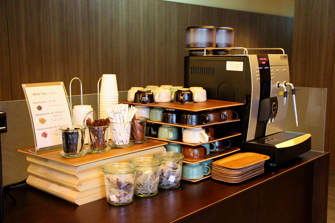 セルフサービスのコーヒーや紅茶も備わっています。