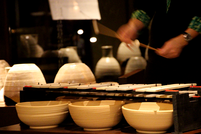 夕食後には、ロビーラウンジで「益子焼」の陶器による演奏会を開催。