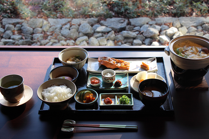 ■AM 8:30 朝食ー益子焼の器に盛られた栃木の食材尽くしの料理