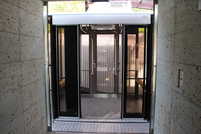 エントランスホール側にスロープカーが待機していた際にも、覗きながら撮影してみました。