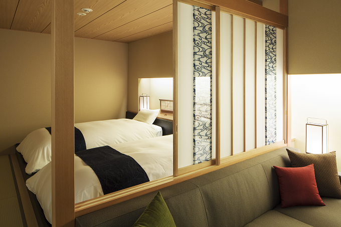 各客室には、「益子焼、黒羽藍染、大谷石、鹿沼組子」といった、栃木民藝が随所にあしらわれています。