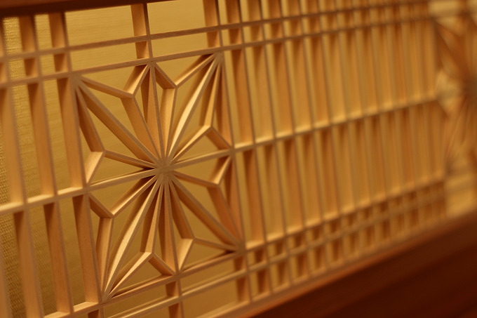 枕元には、木工芸の「鹿沼組子(かぬまくみこ)」。