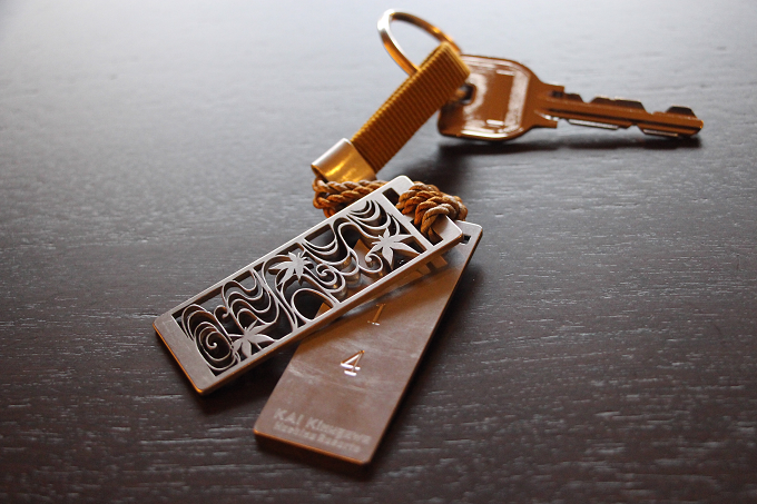ルームキーに添えてある美しいキーホルダーは、足利市・丸信金属工業のブランド「ALART」によるもの。