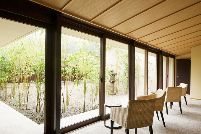 また、露天風呂に続く開放的なテラスも素晴らしく、のどかで優雅なひとときを過ごせます。