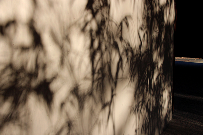 栃木県のみで採掘される「大谷石」を敷き詰めたテラスは、早朝時の光りと影のコントラストも美しく。