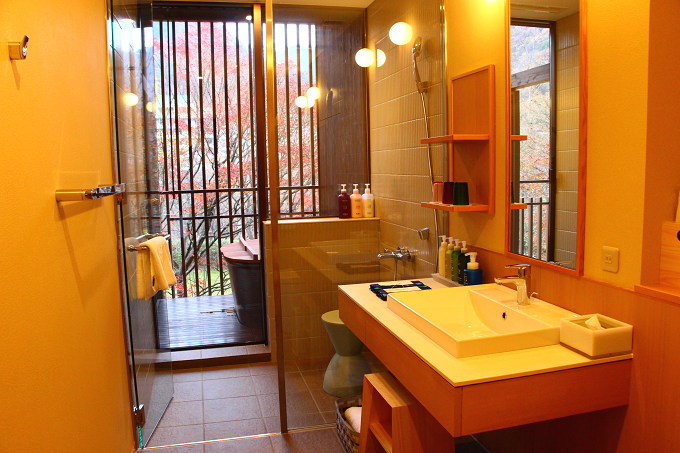 ちなみに、露天風呂からシャワー、洗面所に繋がる導線も非常に使い易く、よく計算されているのが分かります。