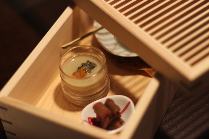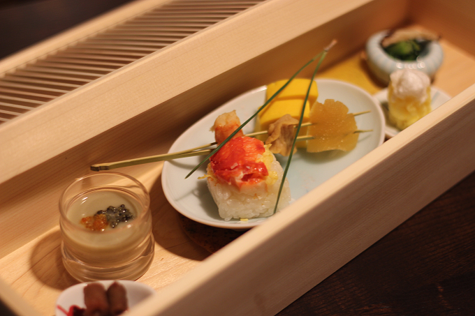 「鹿沼組子」で出来た繊細な小箱から現れたのは八寸。