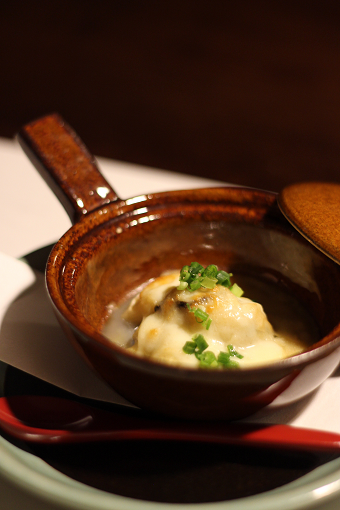 さらには、温かいお椀や蓋物、牡蠣と葱のほう烙焼き。