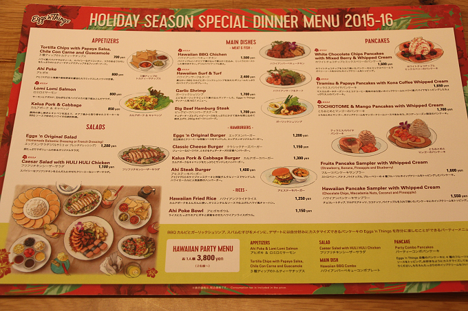 「ハワイアンバーベキューチキン」、「ガーリックシュリンプ」、「エッグスンバーガー」など、