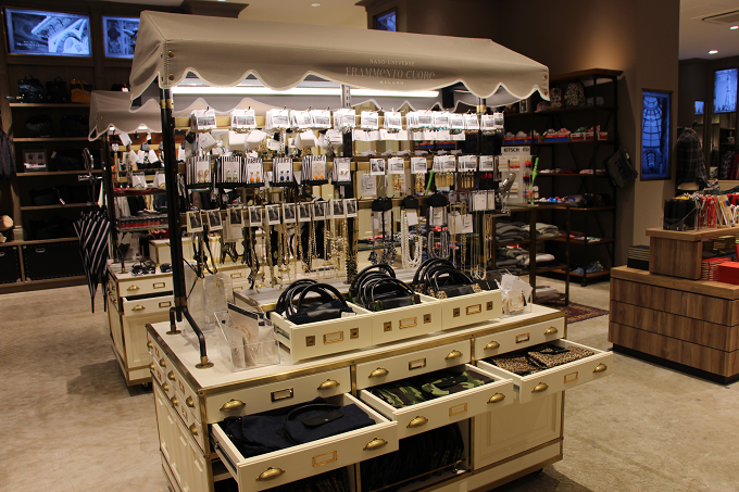 レディースフロアには、オリジナルアクセサリーやステーショナリー、バッグなども数多くありました。