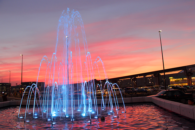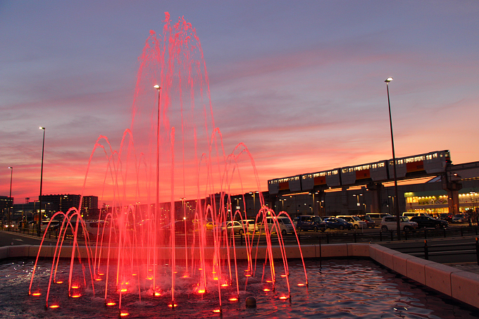日中だけでなく、夜にライトアップされた噴水も見応えがあります。
