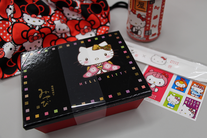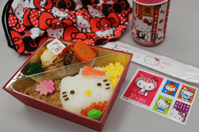 先ずは用意して頂いたお弁当やお茶などに感動-! 全てキティちゃんで揃えてくれている!(感謝!)