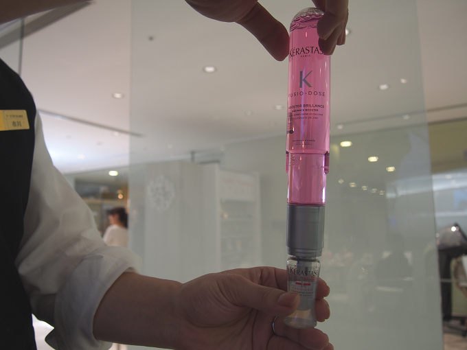 トリートメント直前に「コンサントレ」と「ブースター」を合体させることで、フレッシュで効果の高いトリートメントを使用出来るのだとか。