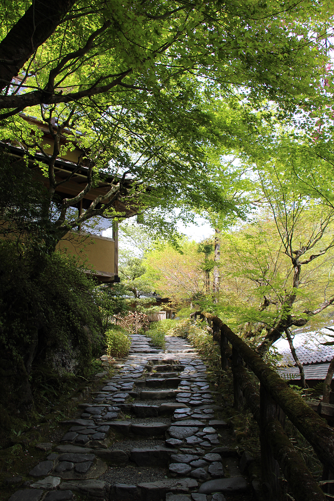 新緑に囲まれたアプローチを抜けた先は、賑わう嵐山の中心地とは全くの別世界。