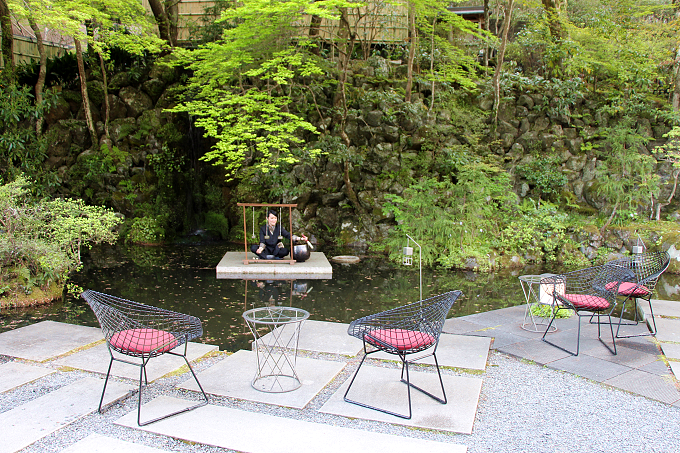 嵐山の斜面に創られた池を中心とした「水の庭」では、涼やかな音色もお出迎え。
