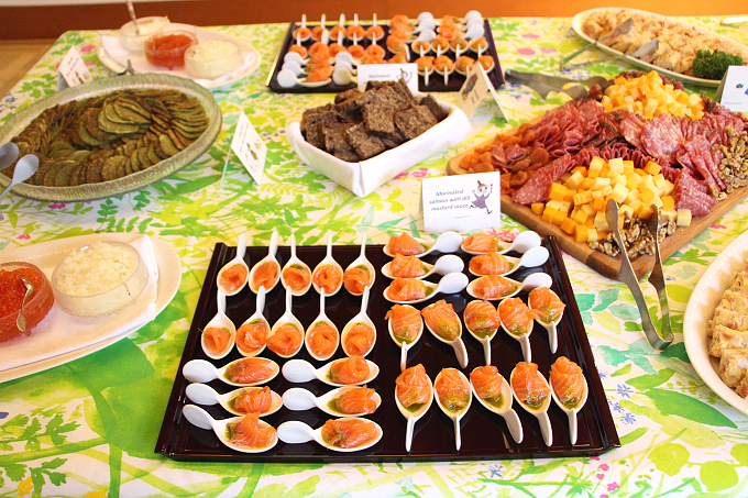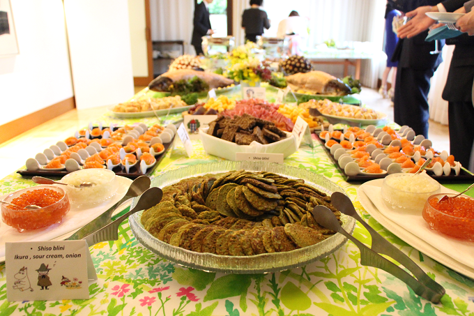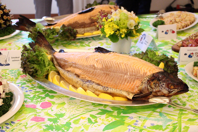レセプションパーティでは、フィンランドの名物料理がずらりと! 豪快なサーモンも登場し会場からは歓声が!!