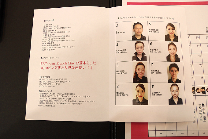 審査の見極め方法も具体的で、《仕上げたメイクにオリジナリティや個性を感じる、完成したメイクアップを自分もしてみたいと思う、実技で仕上げたメイクとリンクした美しいデッサンが描かれている》...と多岐に渡る審査ポイントを踏まえながら、5点満点の採点方式で加算して順位を付けるシステム。