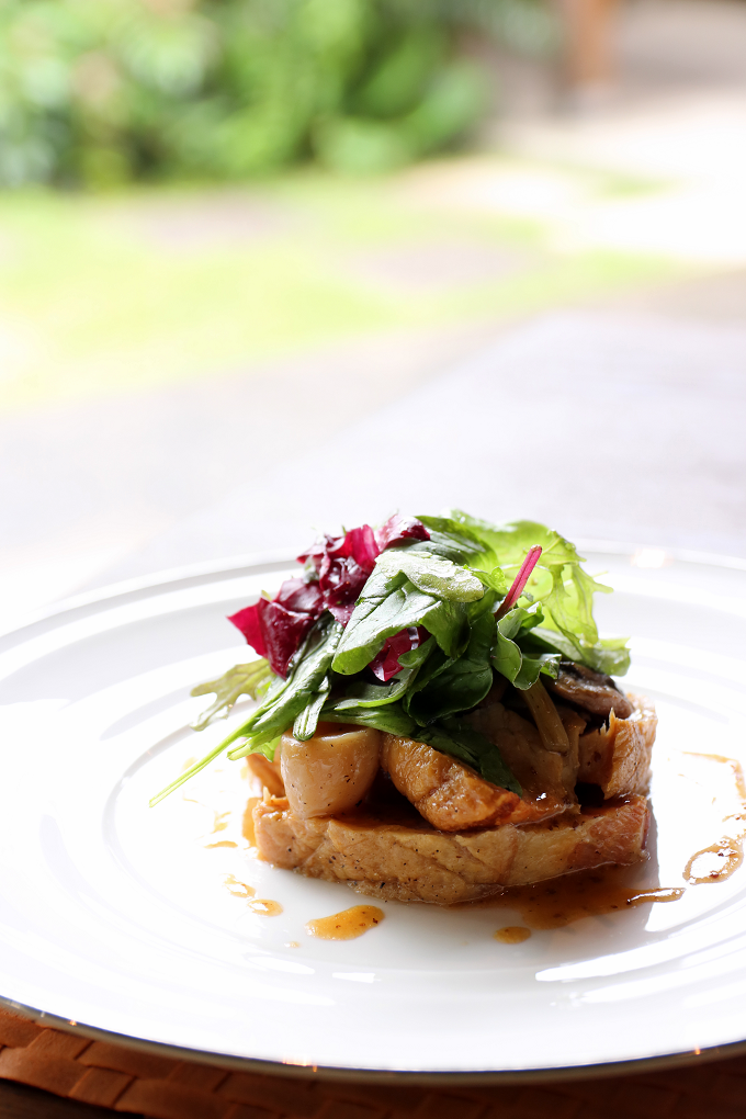 本日のメインディッシュより、お肉料理の「さくらポークのロースト、粒マスタードのソースを添えて」をセレクト。