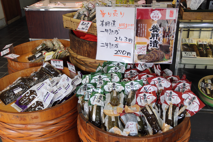 創業慶応元年、六代に渡り養肝漬を造り続け、現在もなお明治時代に製作された大型木製樽で醸造を行う漬物屋です。