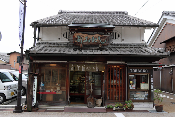 趣のある佇まいがこれまた興味深い「御菓子司 おおにし」。