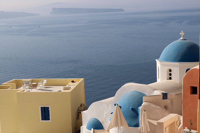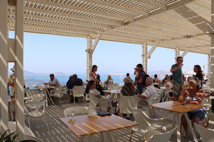 【ロイヤル・プリンセス 地中海とエーゲ海クルーズ 旅行記 Part3】サントリーニ島(カマリ・ビーチ、ギリシャ料理ランチ、フィラの街並み篇)