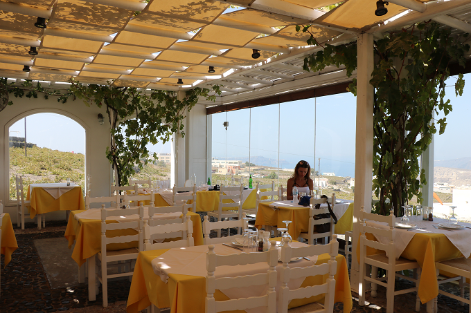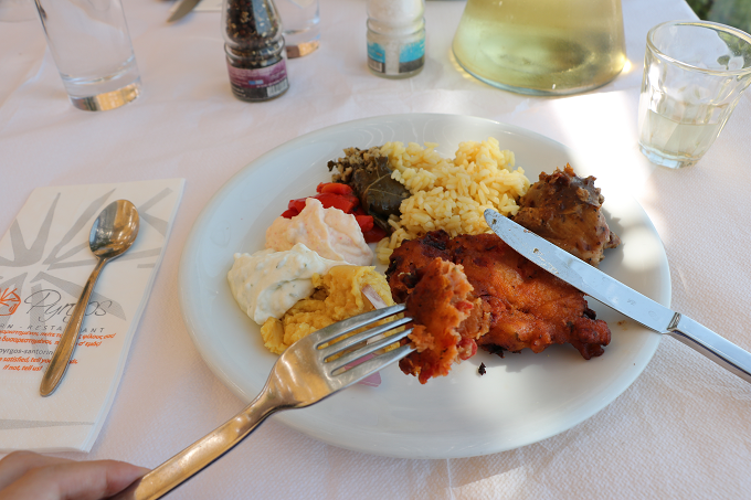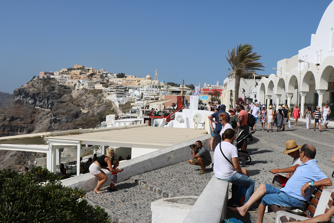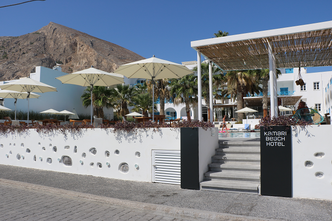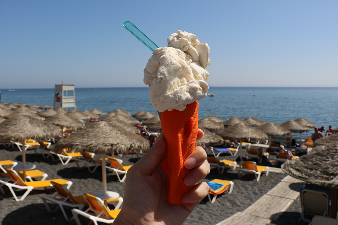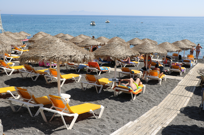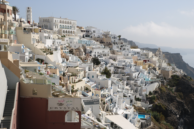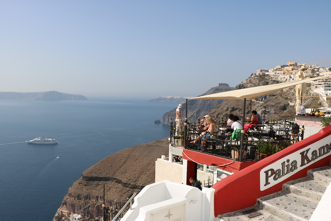 【ロイヤル・プリンセス 地中海とエーゲ海クルーズ 旅行記 Part3】サントリーニ島(カマリ・ビーチ、ギリシャ料理ランチ、フィラの街並み篇)