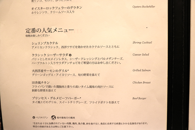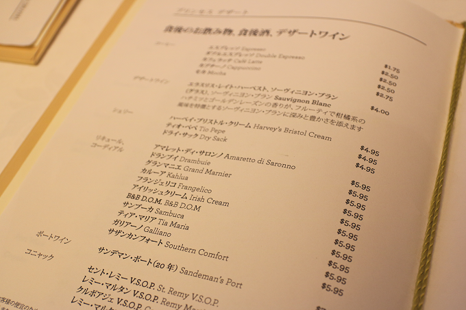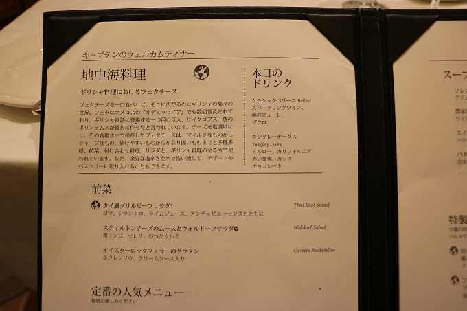 さらには、メイン・ダイニングの食事メニューに関しても、日本語メニューが用意されています。