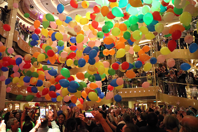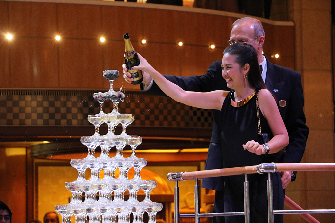 プリンセス・クルーズ名物の「キャプテンズ・ウェルカム・パーティー」では、アトリウムにグラス・タワーが登場。