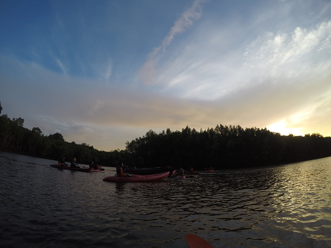 狭い川幅の奥地にあるコウモリの洞窟も探索したのですが、なにより感動したのは、カヤックからの美しいサンセット。