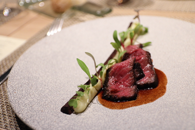 奥出雲のA5和牛“かつべ牛”の炭火焼きタリアータ~牛蒡と甘口赤ワインのエストラット~