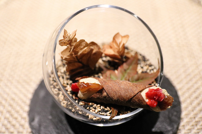 私が頂いたのは「10月のディナーコース(全8品)5000円」で、秋らしい品が揃っていました。