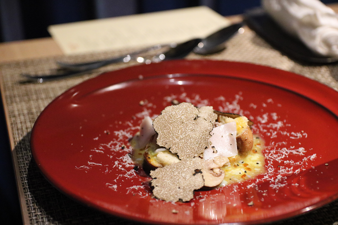 温野菜は目の前でイタリア産黒トリュフをスライスしてくれる演出つき。