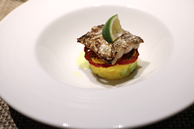 太刀魚の香ばしさ、かぼすの爽やかさ、そして太刀魚の骨からとった透明なスープ。これぞ和モダンイタリアン!