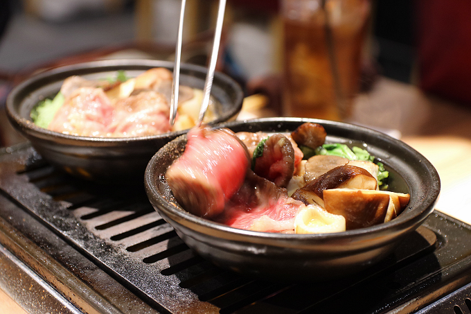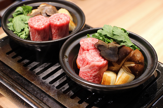 くるくる巻かれたサーロイン牛をグツグツしちゃった後に、栃木益子の濃厚卵にがっつり絡めちゃって下さいな。