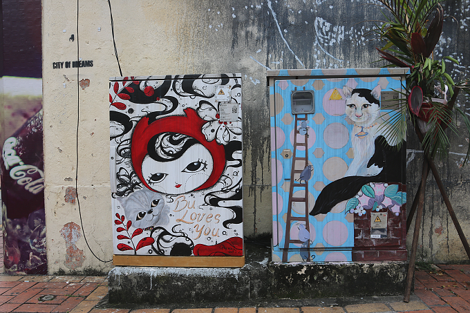 マカオの街では、古い民家や壁面などを利用したウォールアートを見かけることもあります。